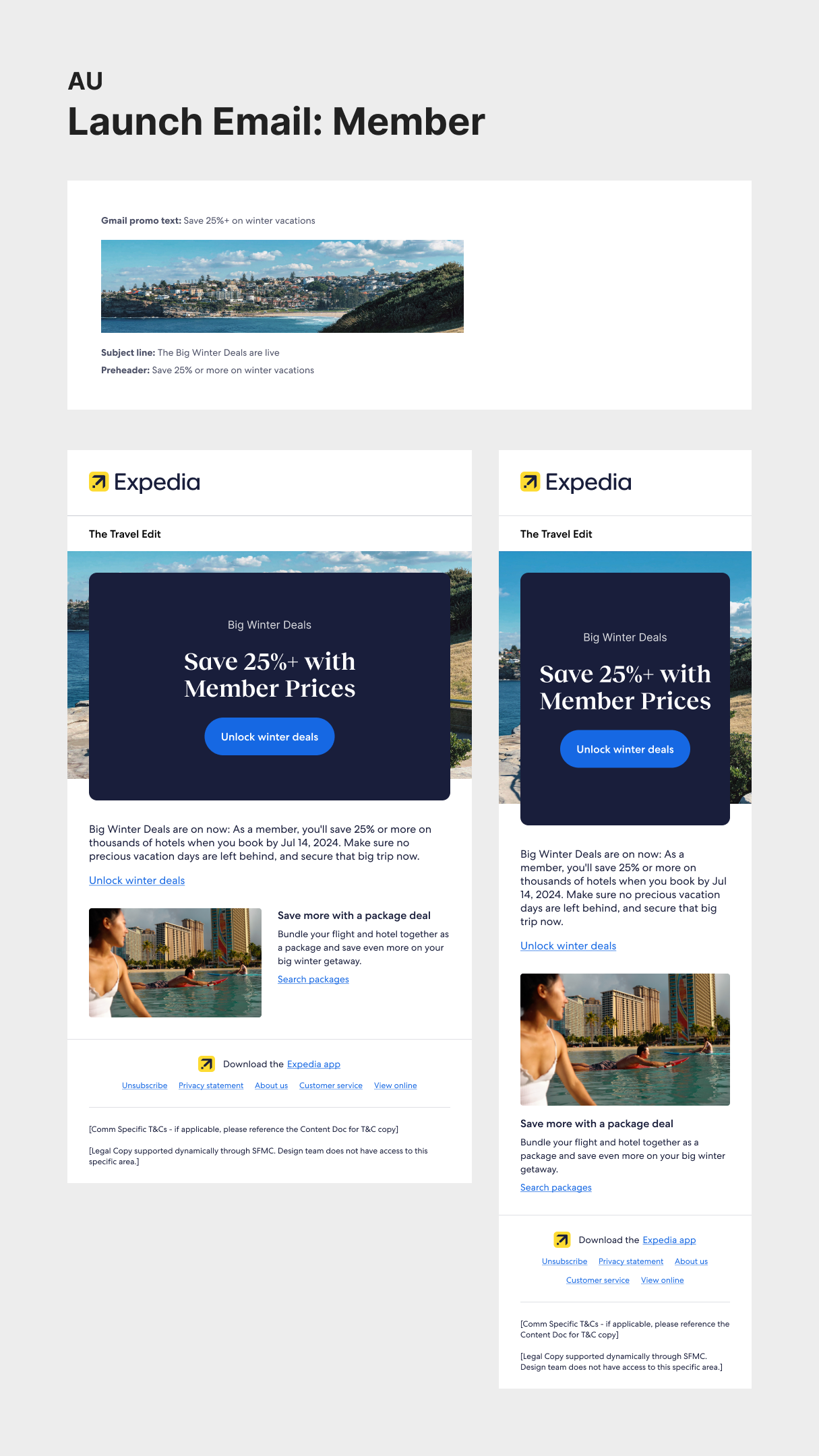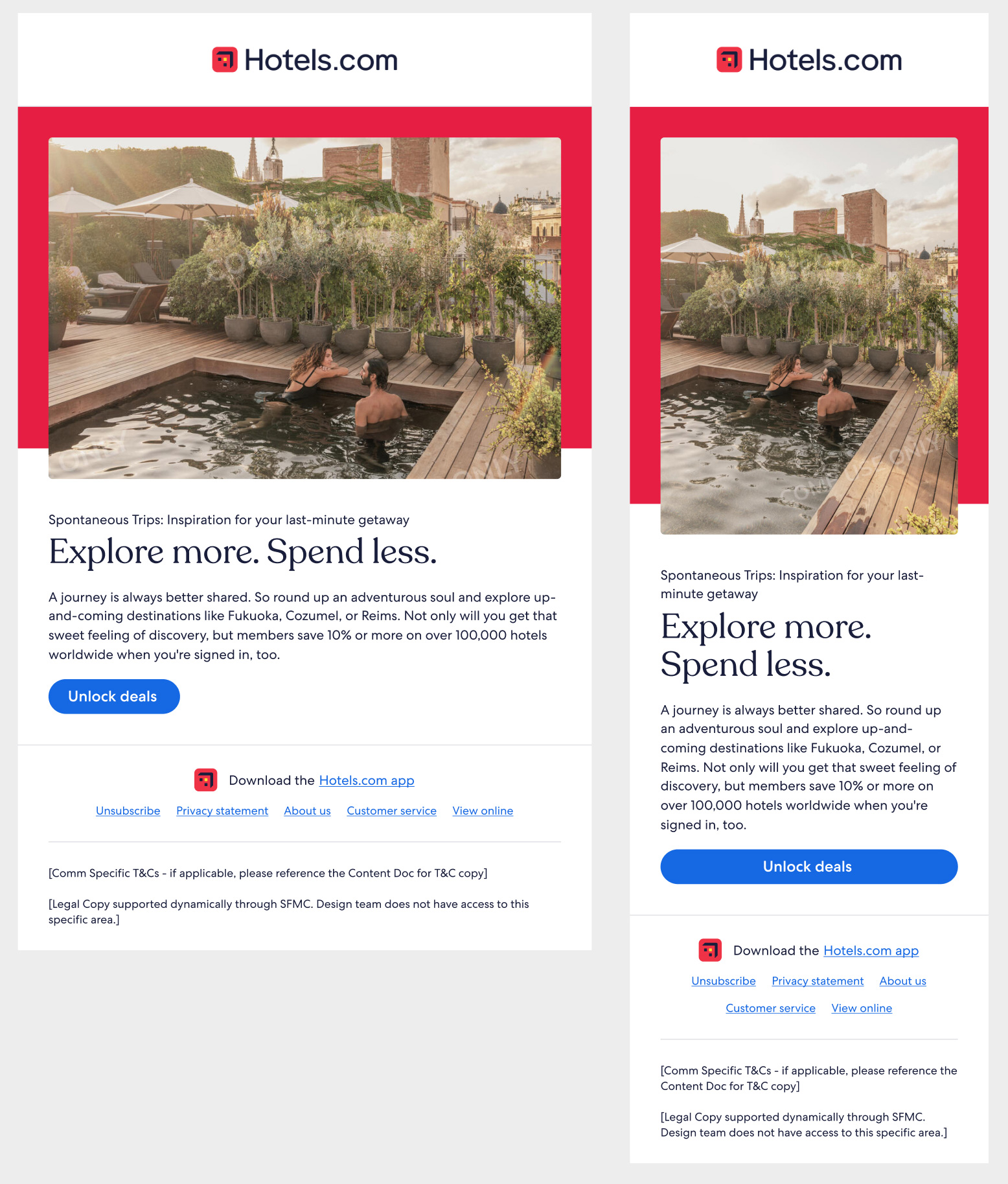 Email marketing production design at Expedia Group is an important part of every marketing campaign as the messaging gets sent out directly to loyal customers. The email marketing designs below shows email heroes and mockup templates I worked on from over the years between 2017 to 2024.